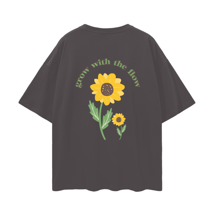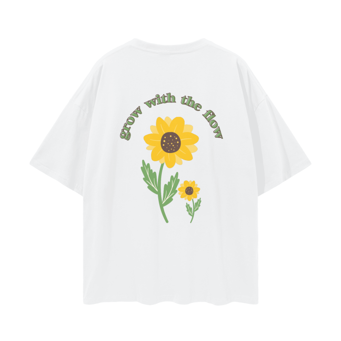 Embrace effortless charm and sunny vibes with our irresistibly cute "Grow with the Flow" oversized tee! 🌻✨ Adorned with blooming sunflowers and an inspirational message, this comfy and stylish t-shirt is perfect for lounging, brunching, or a day out. Stay cozy while radiating positivity and warmth, because just like sunflowers, you’re meant to shine and grow beautifully with the flow! 🌞💛