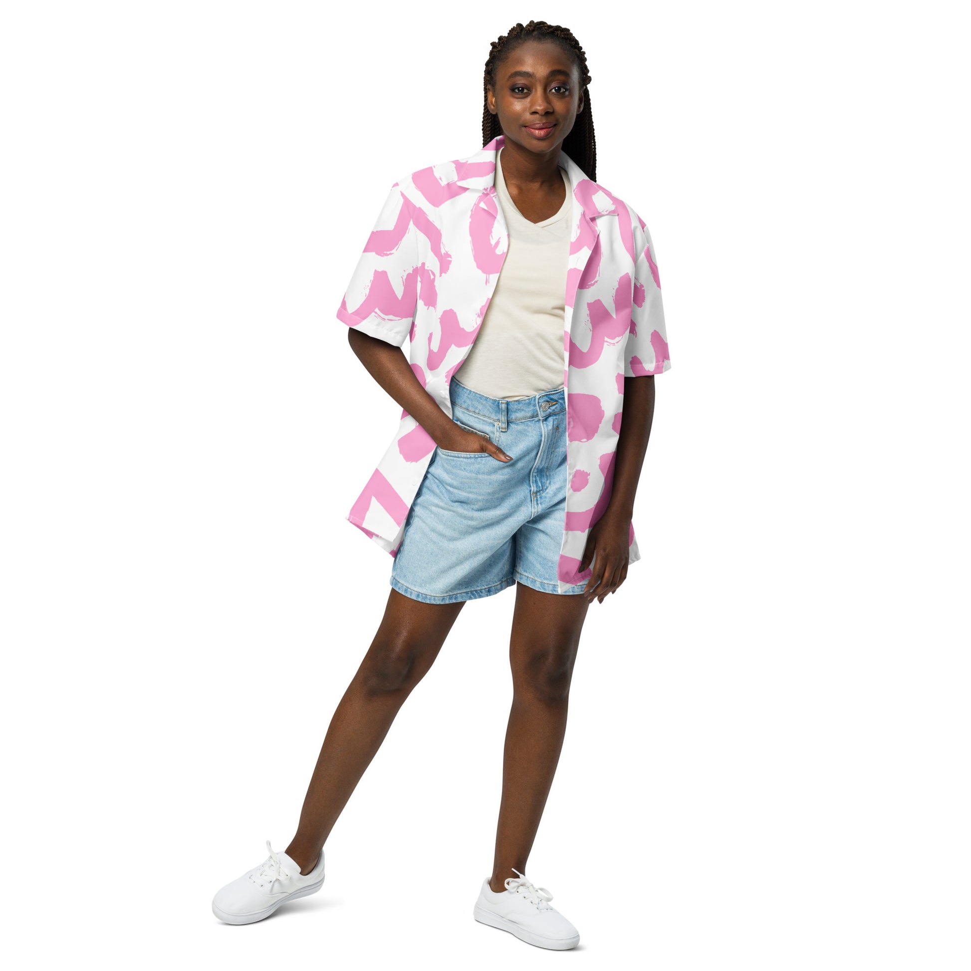 pink 90s pattern button up shirt